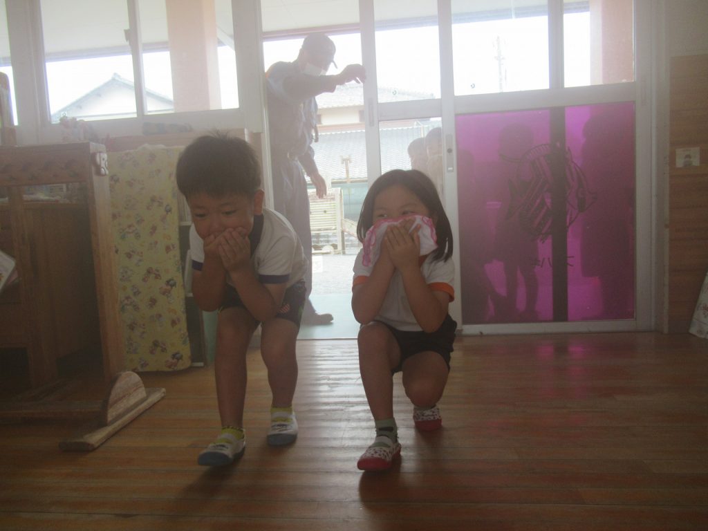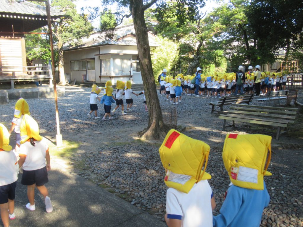 - 園児を第1避難場所(神明宮境内)へ避難させています。早く引き取りに来てください。