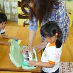 初めて使うカスタネットに興味津々の子どもたちなので、ついつい叩きたくなってしまうけれど、