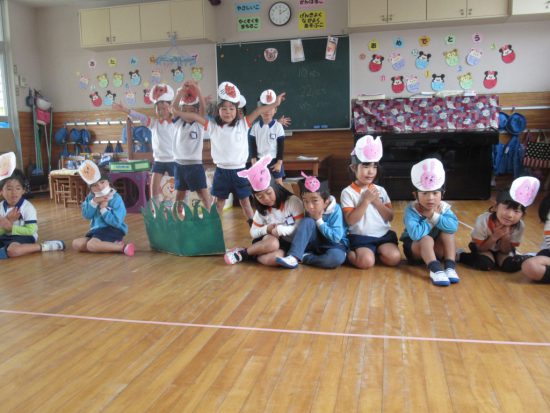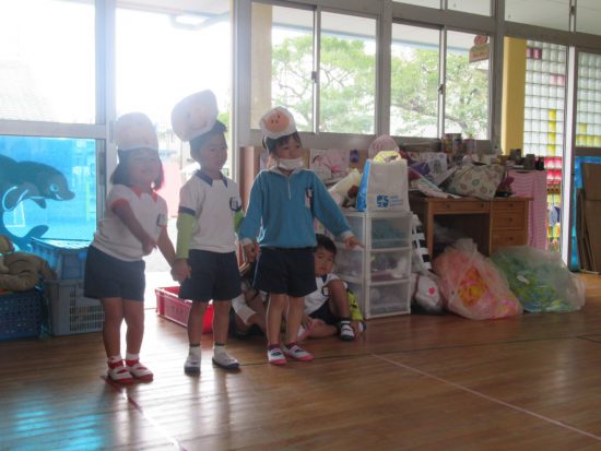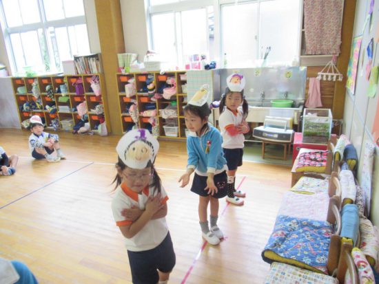 発表会の練習が始まりました♪ 2018年10月26日 年中 年中 今週から発表会の練習がスタートしました 合奏・劇あそびを中心に毎日練習しています ごっこあそびが好きな子どもたちはとても楽しそうに劇の世界に入り込み取り組んでいたり、すでに他の役の子の歌を覚えてしまった子も 合奏も年中から新しい楽器が増えて、リズム打ちも少しパワーアップしました 「早く練習したーい」という声がどのクラスからも聞こえ楽しく活動する様子がうかがえます 本番が楽しみですね