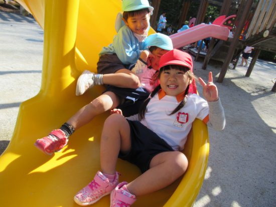 大きなすべり台や園にはないたくさんの楽しい遊具で遊ぶことができ、