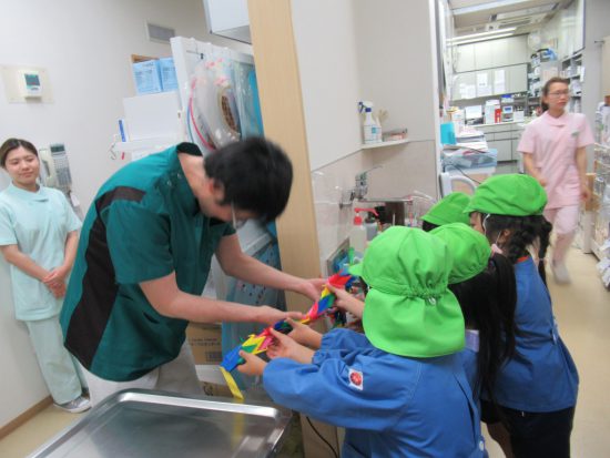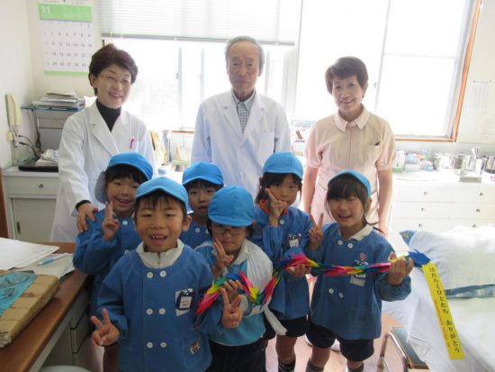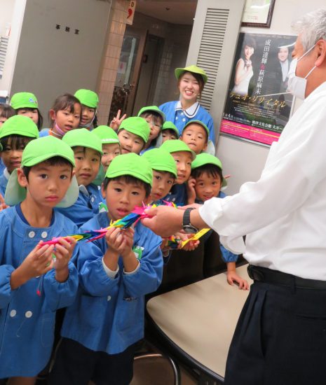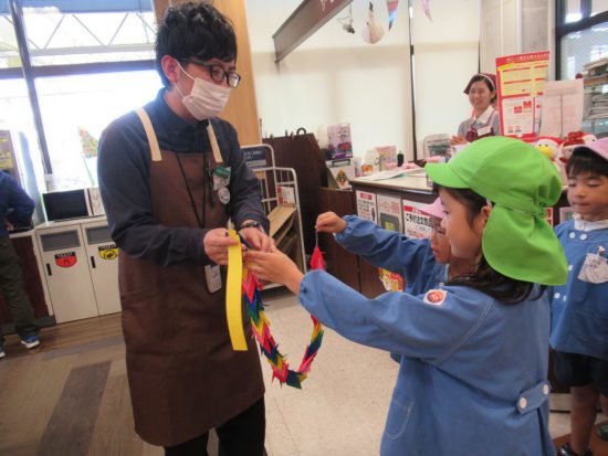 幼稚園を代表して年長児の子どもたちが地域で働く方々に折り鶴を渡してきました![]()