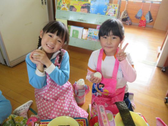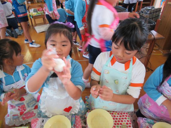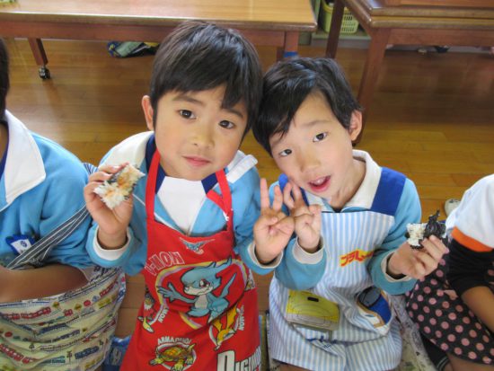 11月13日(水)は年長児が収穫したお米でおむすびパーティーをしました![]()