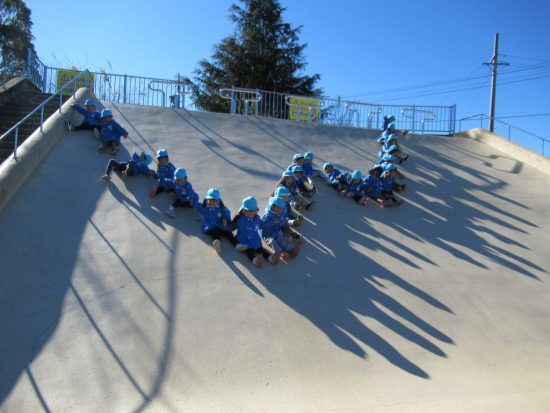手を繋ぎ、横一列で滑って子どもたちは大はしゃぎでした