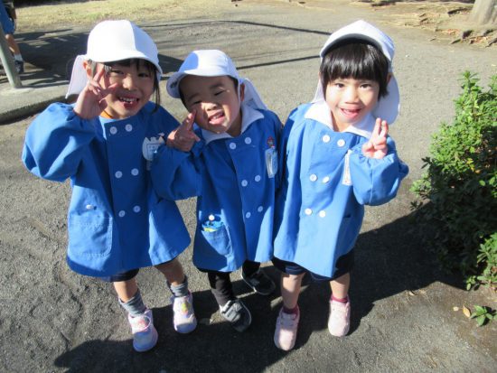 12月4日(水)、リュックサックを背負ってルンルンで登園してきた年少さん