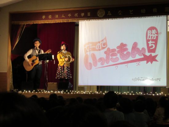 3学期が始まったよ(^^)v 2020年01月09日 共通 共通 3学期がスタート 久しぶりの幼稚園、にこにこで登園し、お友だちと楽しそうに遊ぶ子どもたちの賑やかな声が響いていました 7日(火)は始業式、8日(水)はお楽しみの学園祭 みんなでバスに乗ってみなと幼稚園へ 「ケチャップ・マヨネーズ?」の方が来てくれてみんなで歌ったり、踊ったり……。 とっても楽しそうな姿が見られました 知っている歌もたくさん流れて嬉しそうでした 3学期もみんなで仲良く楽しんで思い出をたくさん作って欲しいです