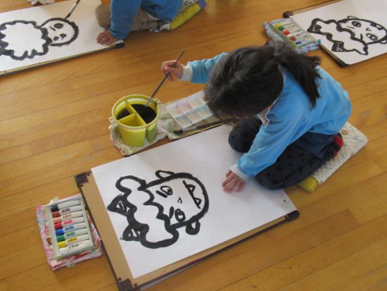 節分会の後は、みんなでお部屋に戻って鬼の絵を描きました![]()
