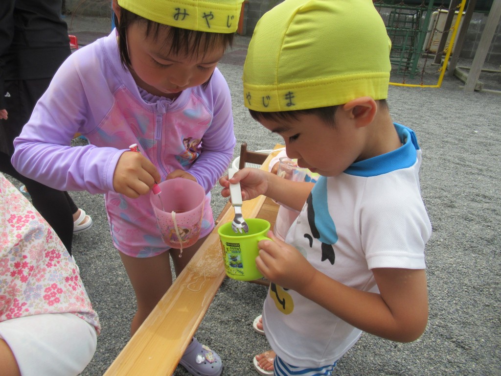7月14日(金)に幼稚園のお友だちや未就園児さんで流し素麺を行いました