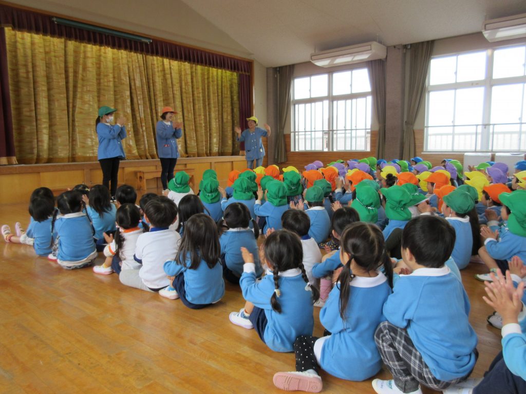 新学期がスタートしたよ‼ 2024年04月12日 年中 年長 新学期がスタートしました🌸☀️🌸 ドキドキ登園した子もいましたが、ピカピカ輝いたそれぞれの新しいクラスの帽子に子どもたちは大喜び😆✨ みんなでホールに集まって始業式をしました‼️ 先生のお話を聞いたり、アンパンマンの劇を見て楽しみました😄🎶 これから新しいクラスで楽しいこどがたくさん待っています❣️✨ 子どもたちと楽しく元気いっぱい過ごします😌💓