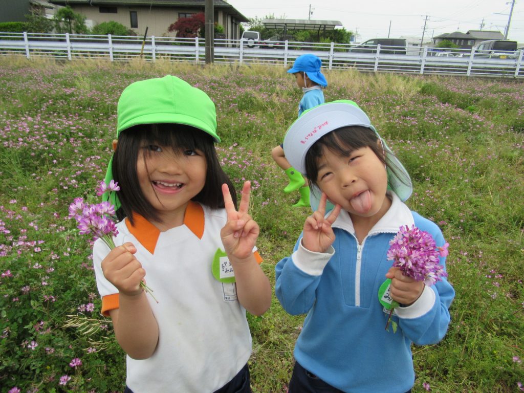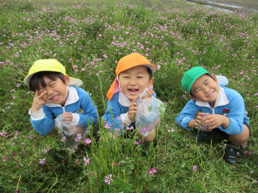 蓮華畑に到着して「このお花摘んでいいの⁉️✨」と目を輝かせていました😍