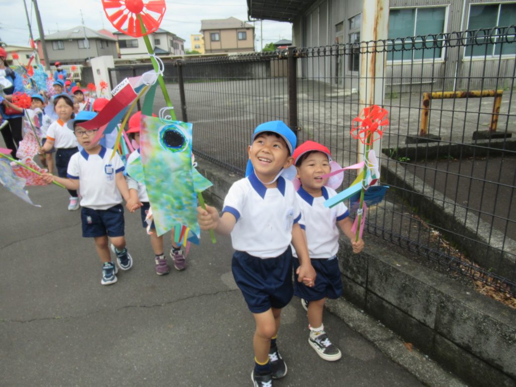 こいのぼりパレード楽しかったよ🎏✨ 2024年05月09日 共通 こどもの日に向けてこいのぼりを作ったり歌ったりして期待を膨らませていた子どもたち😃❣️ 5月2日(木)、みんなが楽しみにしていたこいのぼりパレードを行いました🎏☀️ 一人ひとりが一生懸命作ったこいのぼりを持ち、清見田公園まで頑張って歩きました✌️✨ たくさんの方にこいのぼりを見てもらえてとっても嬉しそうでした🥰💕 子どもたちもこいのぼりのように元気に大きくなっていけますように😊💓 保護者の皆様もあたたかく見守ってくださり、ありがとうございました😌🌷