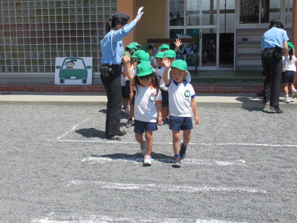 交通安全教室をしたよ! 2024年06月14日 年中 6月12日(水)に年中さんの交通安全教室がありました🚥☀️ 指導員さんから、歩道の歩き方や横断歩道の渡り方など、交通ルールを教えてもらいました😀💡 指導員さんからの質問にもしっかり答えていた子どもたち😊 お話を聞いた後は実際に園庭に出て横断歩道を渡ってみることに🎵 「右よし‼️左よし‼️」と確認をしながら上手に渡ることができました👍✨ 外を歩く時は、今日学んだ交通ルールを思い出してほしいです😌🌻