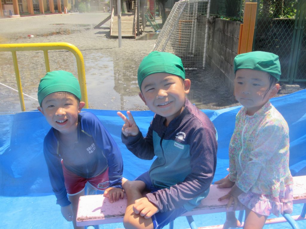 ウォータースライダーをやったよ♫ 2024年07月26日2025年07月28日 共通 7月22日(月)から水遊び保育1週目が始まりました🫧🏖️ 砂場あそびをしたり、シャワーあそびをしたり、プールでもたっぷりあそんだりと、水遊び保育を楽しんでいます😀💓 今日はいつもとは違ったプール💡ウォータースライダーで遊びました⛲☀️ 幼稚園のすべり台がウォータースライダーに変身‼️✨ 子どもたちは大喜びで夢中になってすべり、とっても嬉しそうな子どもたちでした😍💕 普通にすべったり、スーパーマンになってすべったり……。滑り方を考えて楽しんでいる子どもたちでした😆✨
