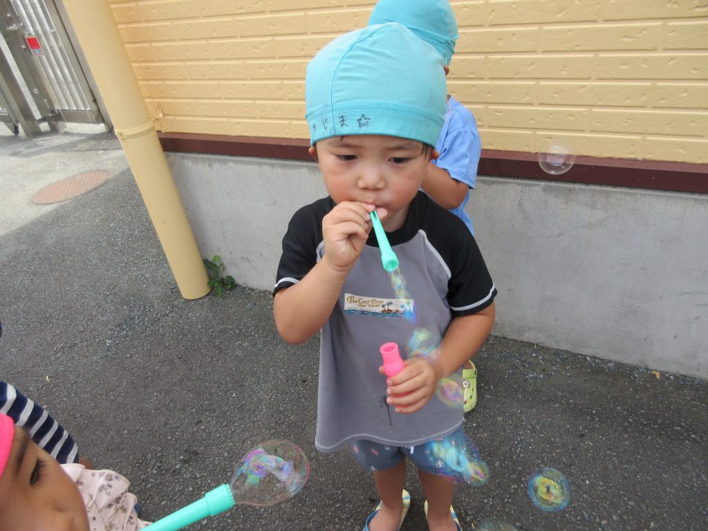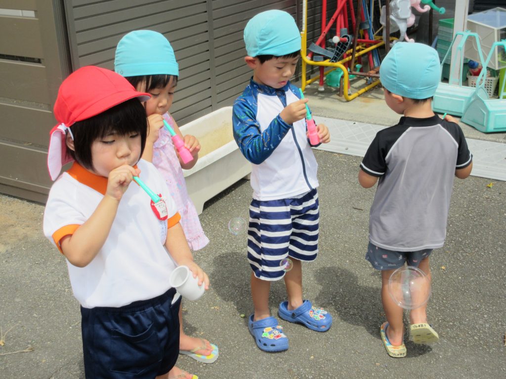 しゃぼん玉で遊んだよ‼ 2024年08月06日2025年07月28日 年少 水遊び保育2週目‼️🏖️☀️ 今週もとっても暑い日が続いていますが、年少さんは元気にしゃぼん玉で遊びました🫧💕 ふーっと思い切り息を吹いて大きなしゃぼん玉を作ったり、優しく吹いて大きなしゃぼん玉を作ったりして楽しんでいました🥰🎶 しゃぼん玉の中に飛び込んだり、飛んできたしゃぼん玉を追いかけたりそれぞれの楽しみ方でしゃぼん玉を満喫していた子どもたちでした😁🫧✨