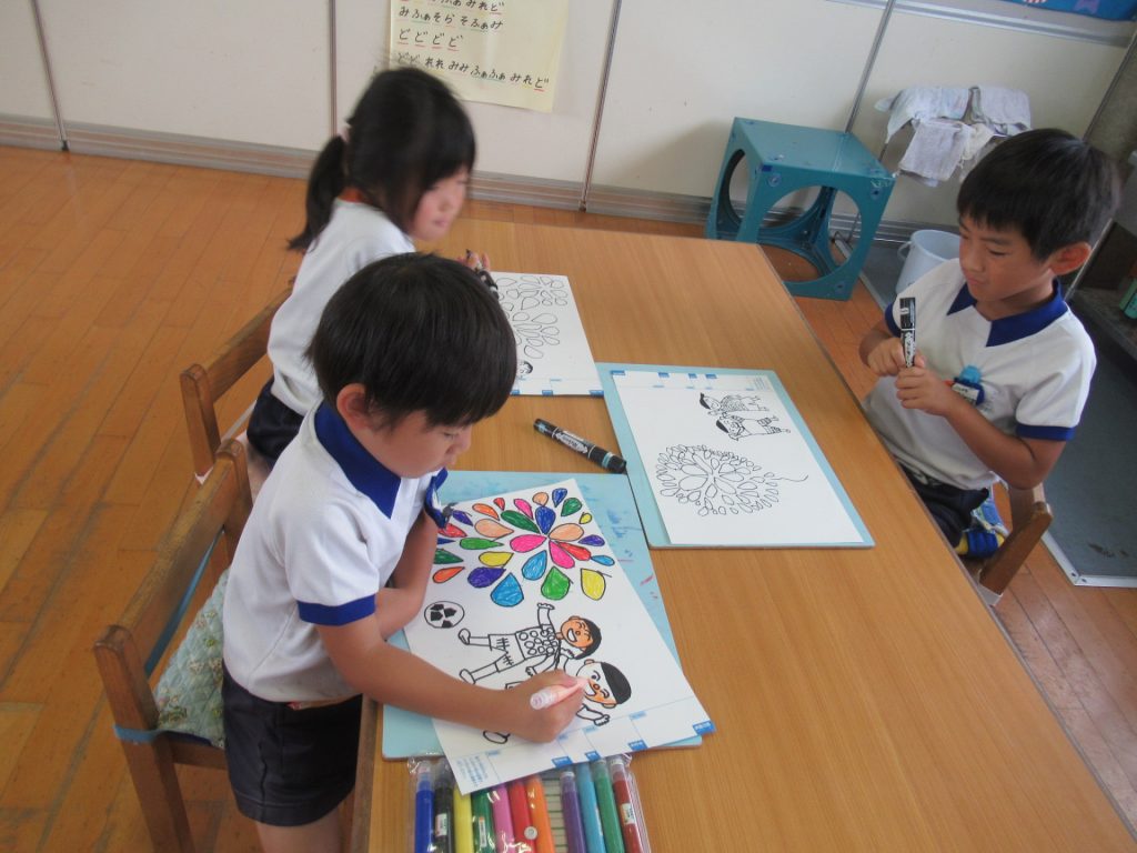 夏休み楽しかったよ‼ 2024年08月30日 年長 長い夏休みが明けて夏期保育が始まりました🚎🎶 休み明けも元気に登園してきた子どもたち😁☀️✨ 年長さんは夏休みの思い出の絵を描きました✌️🏖️✨ 水遊び、花火やお祭りに出掛けたなど、楽しかったことを思い出しながら一人ひとり思い思いの絵を描きました🎨😀💓 どの子も絵からも楽しかった様子がよく伝わってきましたよ😆💕 この絵は冬に焼津のスーパーヒバリヤさんに飾られる予定です‼️ また、是非お子様と見に行ってあげてください😌⭐