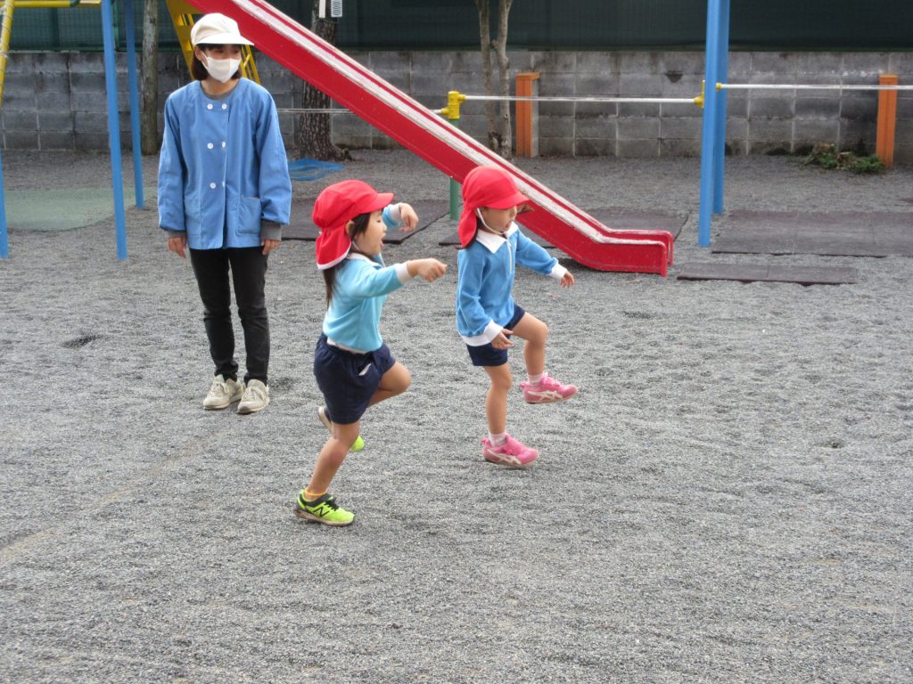 体育あそびをしたよ☺ 2024年11月15日 年少 10月から体育あそびが始まり、11月12日(火)は年少さんでスキップをしたり、太鼓橋の上で向きを変えて登り降りをしたり、普段のあそび方とはまた違った体の使い方をしました😀✨ 初めてでちょっと怖がったり、「どうやるの~⁉️」と少し戸惑ったり……。 でも、お友だちの応援のおかげで挑戦でき、「できた‼️」の喜びをみんなで一緒に共有することがきました😊🏆 発表会も近くなってきましたが、外で遊びやすい季節になってきたので怪我のないように楽しく体を動かしてほしいです😆🍂