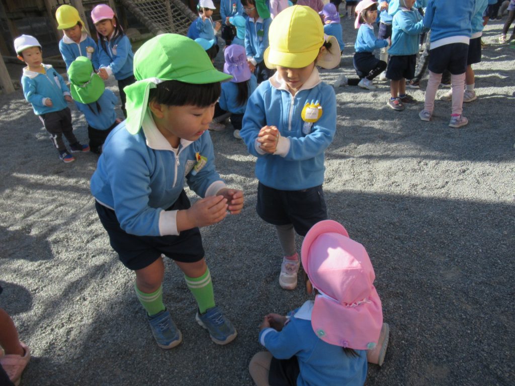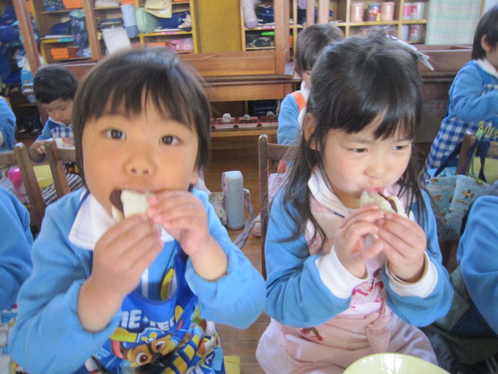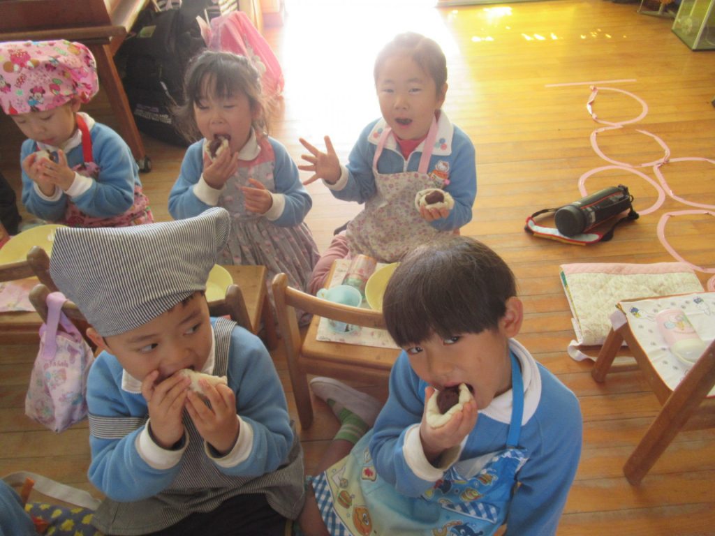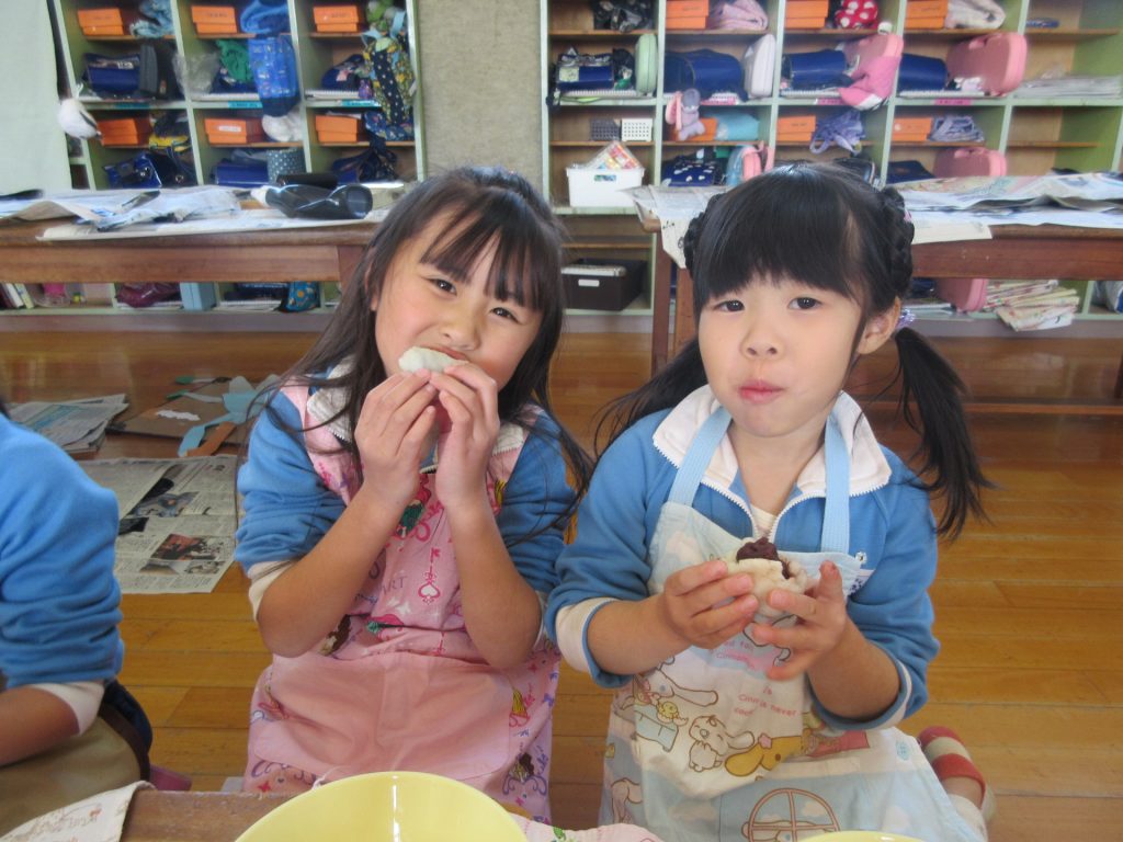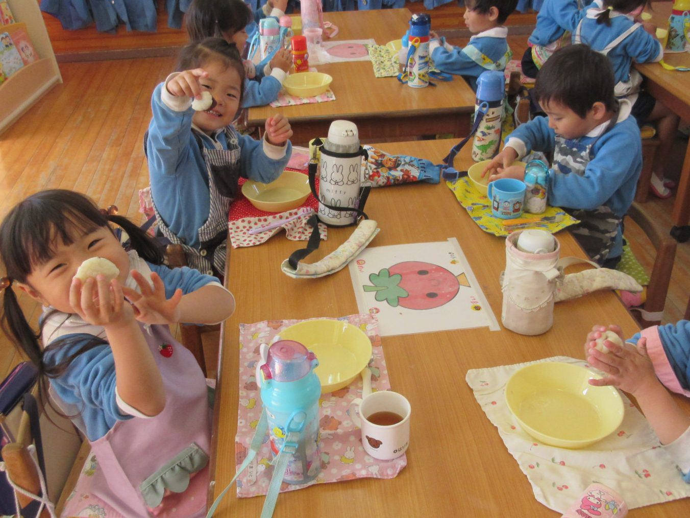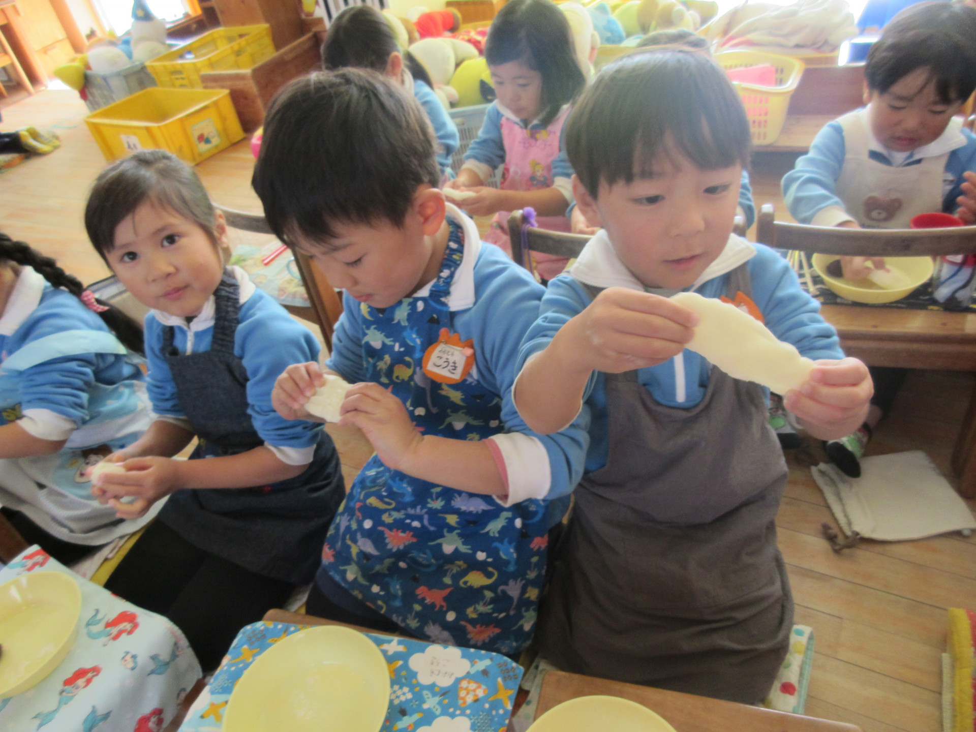 おもちつきをしたよ☺ 2024年12月12日2024年12月16日 共通 12月12日(木)にみんなでおもちつきをしました😀☀️ お集まりでおもちつきで使う道具を見たり、みんなで手遊びをしました😆🎶 その後は学年毎におもちつきの様子を見たり、年長さんはおもちつきの体験もしました✌️✨ クラスに戻ってからはつきたてのおもちに自分たちであんこを入れて包んで食べました😋💕 「びよーんって伸びるね‼️」「おいしいね💓」と大喜びの子どもたちでした😄🍂 日本の伝統文化の体験ができてよかったね☺️🎌