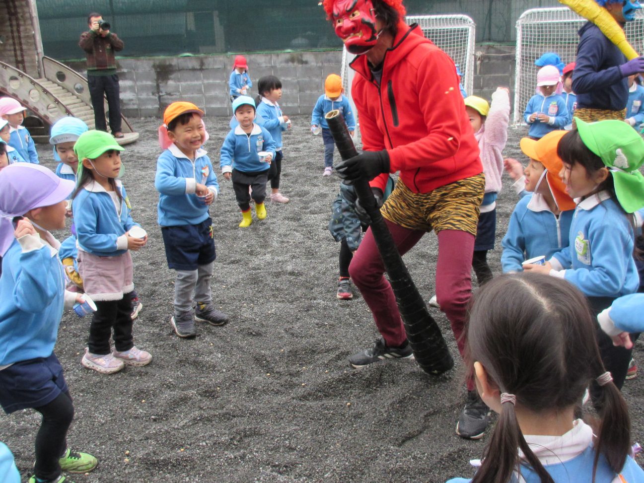 節分会👹 2025年02月06日 共通 節分ということでみんなで節分会をしました‼️😀 節分についてお話を聞いたり、「まめまき」「鬼のパンツ」の歌をみんなで歌ったりして楽しみました😄🎶 鬼退治の仕方もしてみよう‼️とお豆を投げる練習も👍🎵 するとそこへ鬼登場👹⚡⚡ 「きゃー😭」とみんなの表情が一変💥怖がる子どもたち😣💦 泣いてしまう子もいましたが勇気を出して持っている豆を「おには~そと~‼️」と鬼に投げて鬼退治することができました👏✨ 怖かったけど戦えて強い力がつき嬉しそうな子どもたちでした💪😊💓