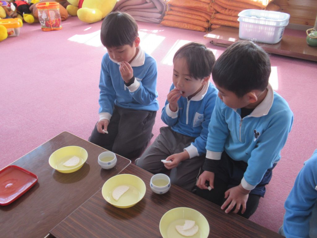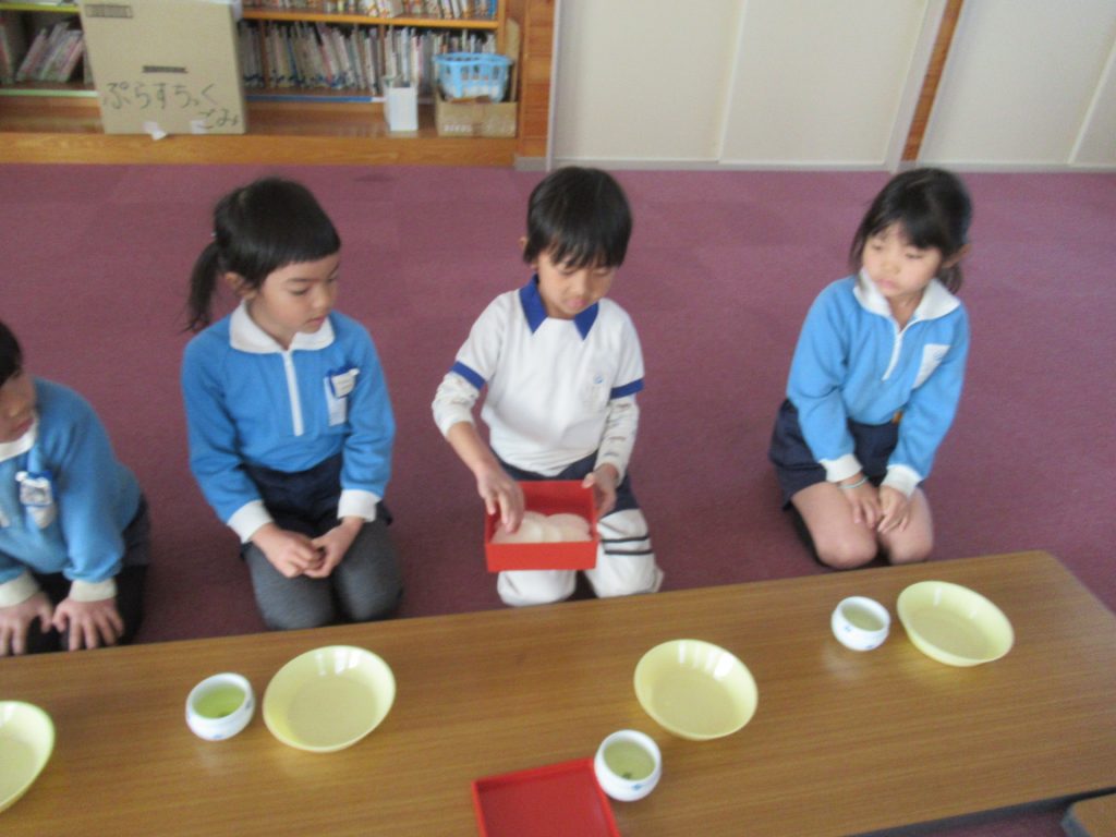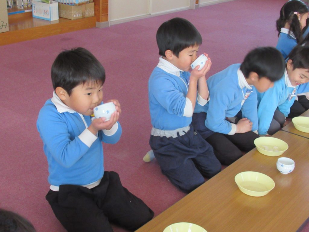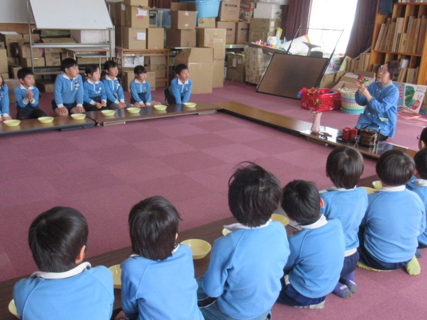 お客様ごっこをしたよ‼ 2025年02月28日 共通 年長 2月26日(水)に年長児のお客様ごっこを行いました🙇♀️🍵 お客様として集会室に招かれてお話を聞いたり、お作法を学びました‼️ 副園長先生の「みんなが食べている全てのご飯には命があるんだよ❤️」というお話では、真剣な表情で聞いていた子どもたでした✨ その後は美味しいお茶とおせんべいを頂き、静かな時間を過ごしました😊 年長さんになり、きちんとした姿勢で静かに話を聞けるようにもなり成長を感じます👍✨ この経験を是非今後にも活かして欲しいと思います😌🌷
