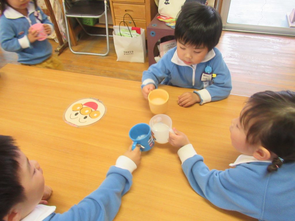給食の時間にはカルピスでお友だちと「かんぱーい💕」