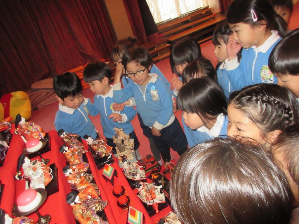 ひな飾りの前でひなまつりやお人形についてのお話を聞いたり、ひなまつりの歌を元気いっぱい歌ったりして楽しく過ごしました😆🎶