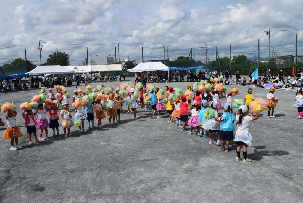年中さんはカラフルなポンポンを持って元気いっぱいなお遊戯でしたね😁🎵