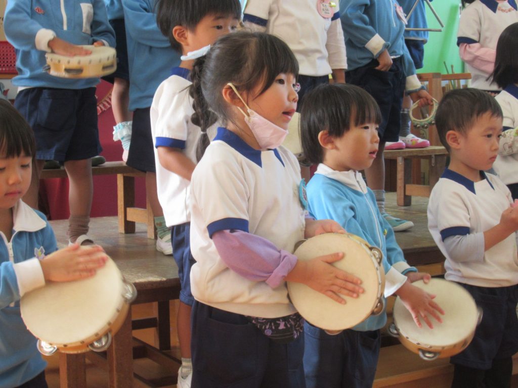 発表会の練習をはじめたよ🎶 2025年10月23日 年少 発表会に向けて、練習が始まりました🎶😀 劇あそびでは、自分たちで作った動物のお面を被って役になりきり、みんなで息を合わせてセリフを言ったり、にこにこダンスを踊ったり、とても楽しく練習をしています🐰🐻🐭🐱🐷 また、楽器あそびも始まり、一生懸命手を上にあげて楽器を鳴らしたり、膝を曲げてリズムを取ったり、色々な音の出る楽器に触れて嬉しそうにしています😆🥁💕 本番でおおうちの方々に見てもらえるのをとっても楽しみいしている子どもたちです。これからも力を合わせて頑張ります‼️✌️✨