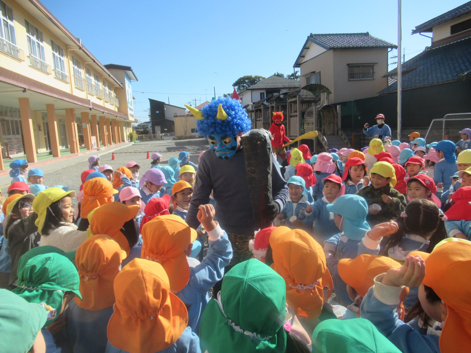 節分会👹 2026年02月06日 共通 2月2日(月)にみんなで節分会をしました😀🎵 お部屋で練習していた「まめまき♪鬼のパンツ♬」の歌を元気いっぱい歌い、節分についてのお話を聞きました🎶 心の中の鬼を退治しようと豆まきの練習をすることに‼️💪 「おには~そと‼️」「ふくは~うち❣️」 みんな大きな声で練習していると・・・なんと鬼が登場👹💥👹 「きゃー💦」と怖がる子どもたち😭😭 泣いてしまう子もいましたが、勇気を出して持っている豆を投げて無事鬼を退治することができました🥲✨ 立ち向かうかっこいい姿が見れた節分会でした😊🌟