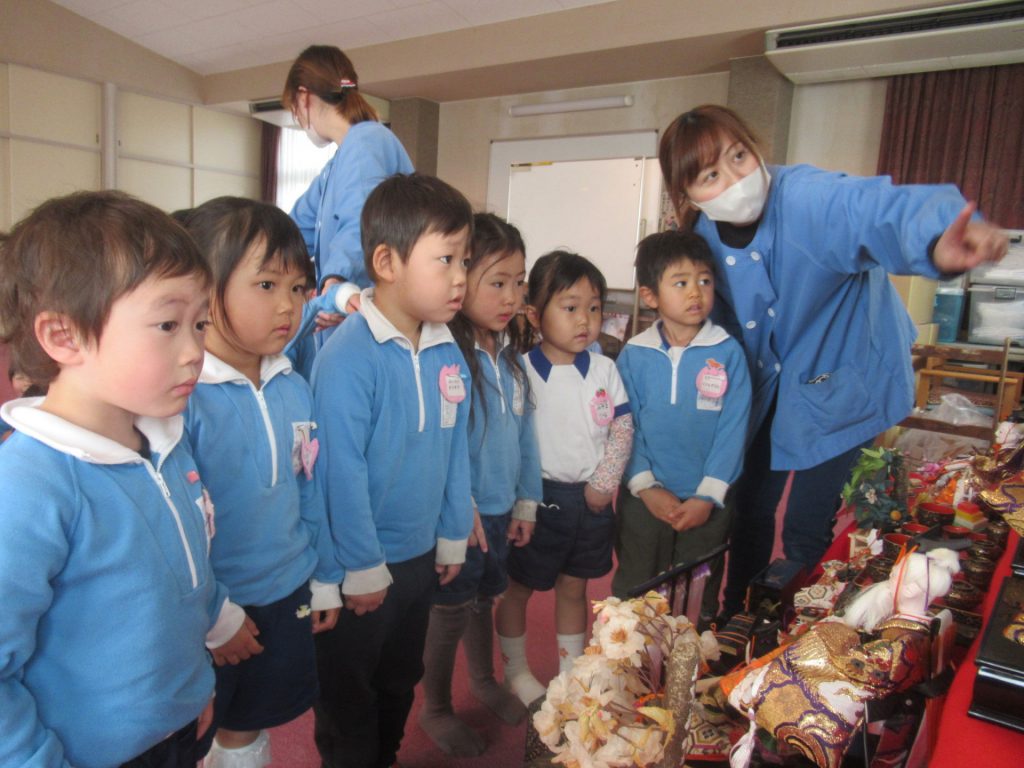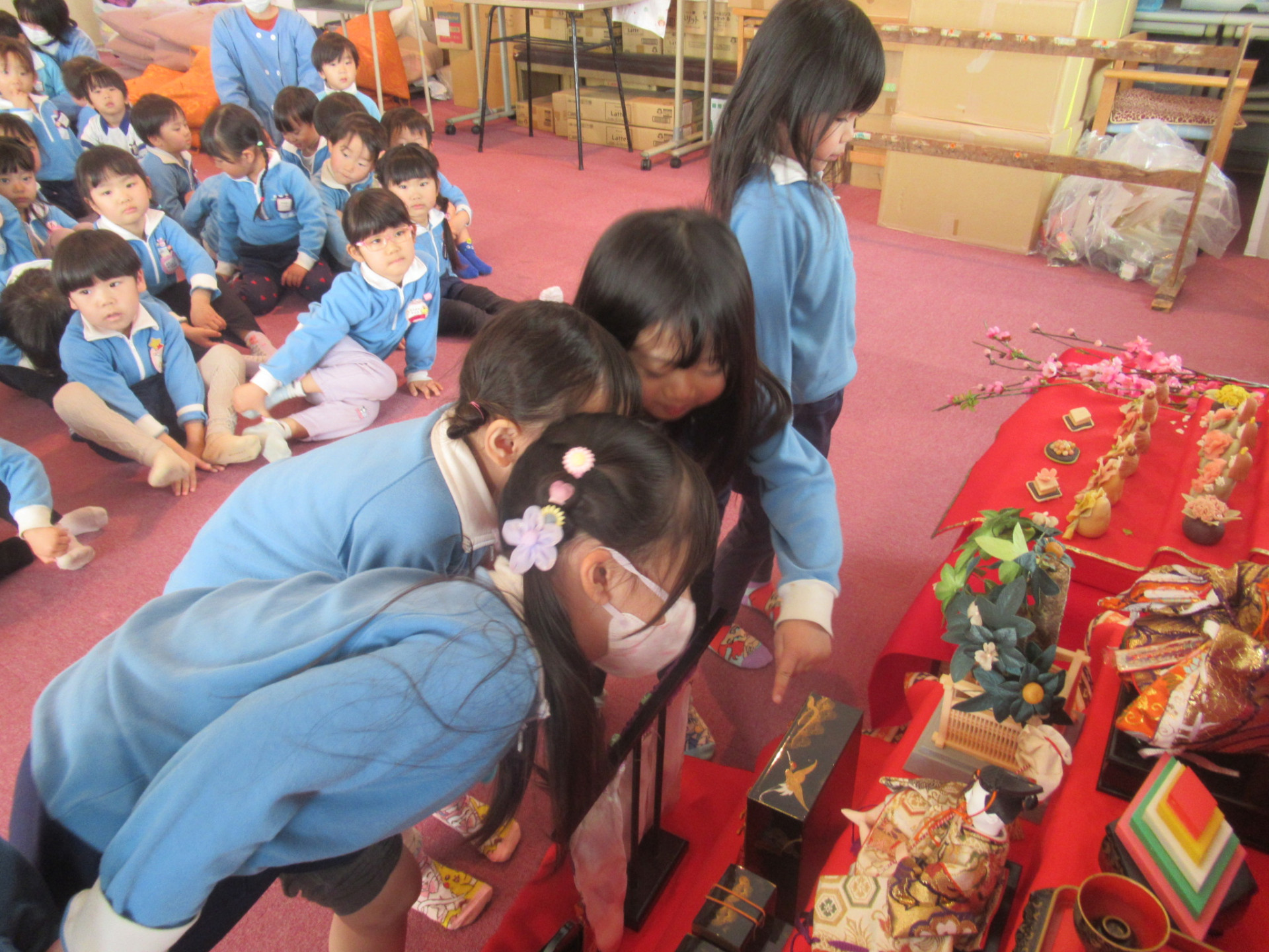 集会室には雛人形が飾ってあり、子どもたちの目はキラキラ🤩🤩