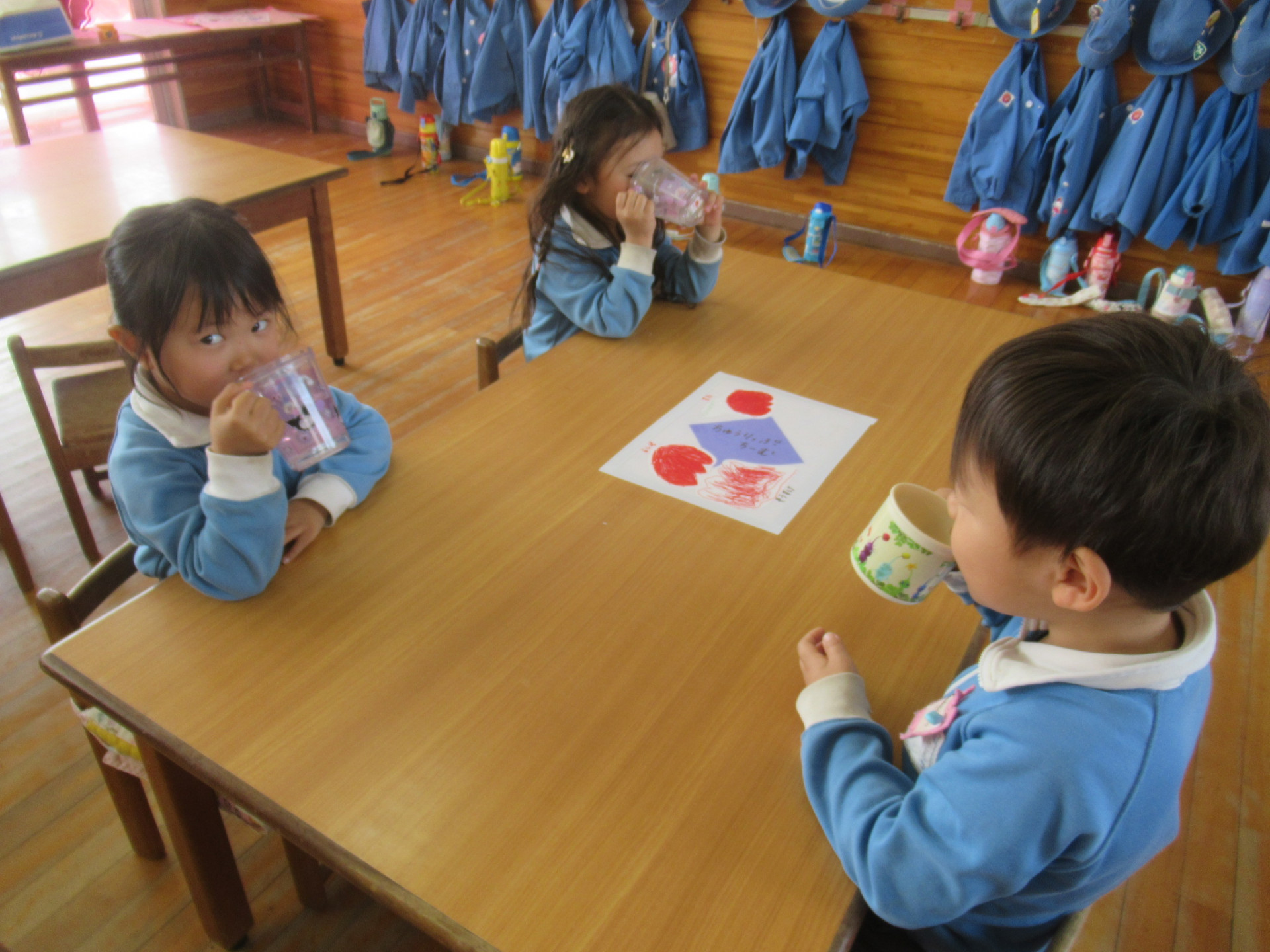 お部屋に戻ってからはカルピスを甘酒に見立てて楽しく「乾杯~‼️」