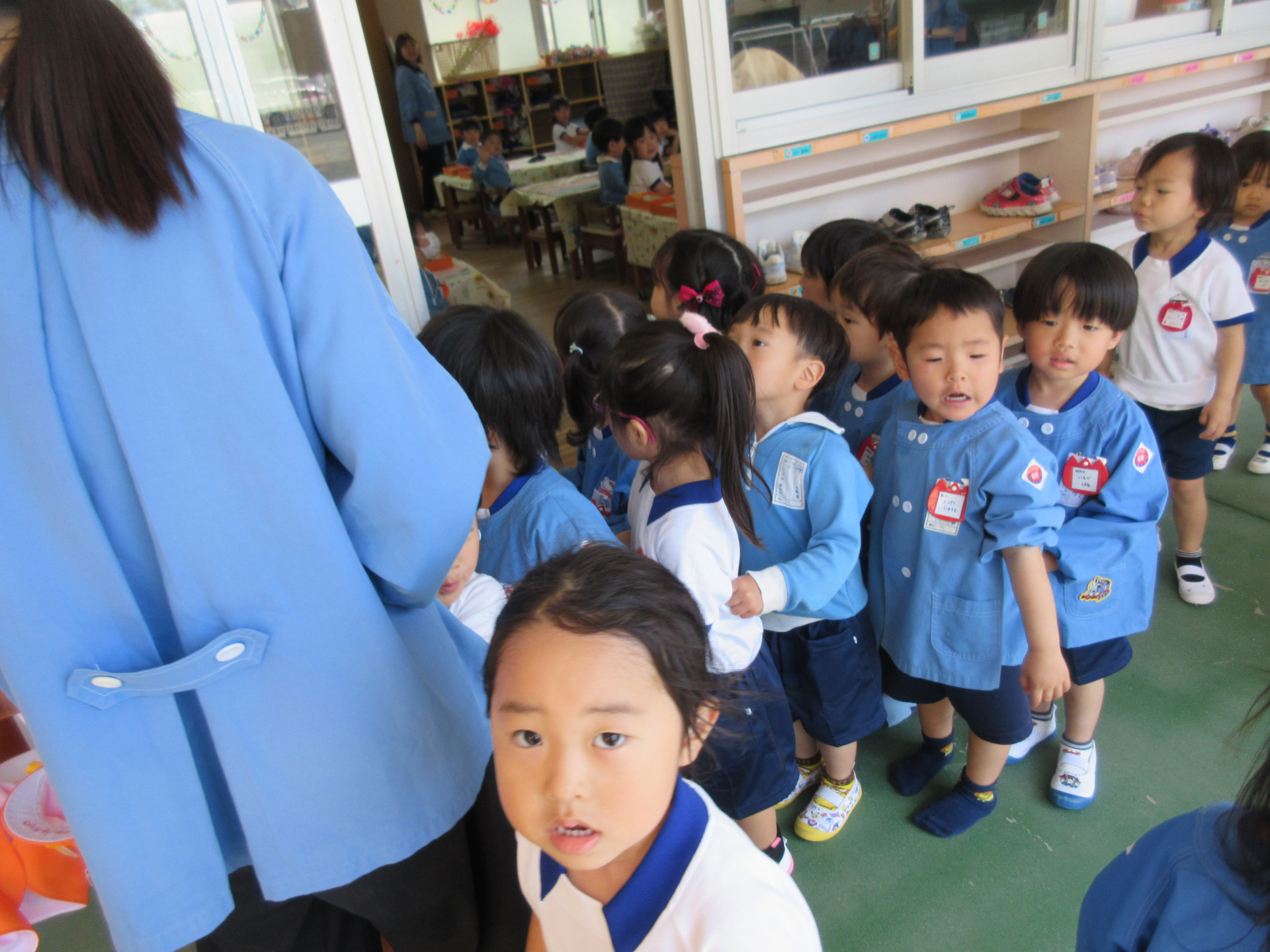 園内探検をしたよ‼ 2026年04月17日 年少 4月16日(木)に年少みんなで園内探検をしました😀✨ クラスのお友だちと列車になって歩き、初めて行く場所にドキドキしながらも「ここは何のお部屋かな?👀」と目をキラキラさせていた子どもたち🤩🎶 幼稚園を探検しながらトイレの使い方や階段でのお約束を覚え、階段も壁にぴったりと手をつけながらゆっくり上り下りする事ができました😊👍 自分のクラス以外のお部屋を探検し、新しい発見をみんなで楽しみました😆💞 少しずつ園での生活に慣れ、たくさんの思い出を作ってほしいです😌🌟