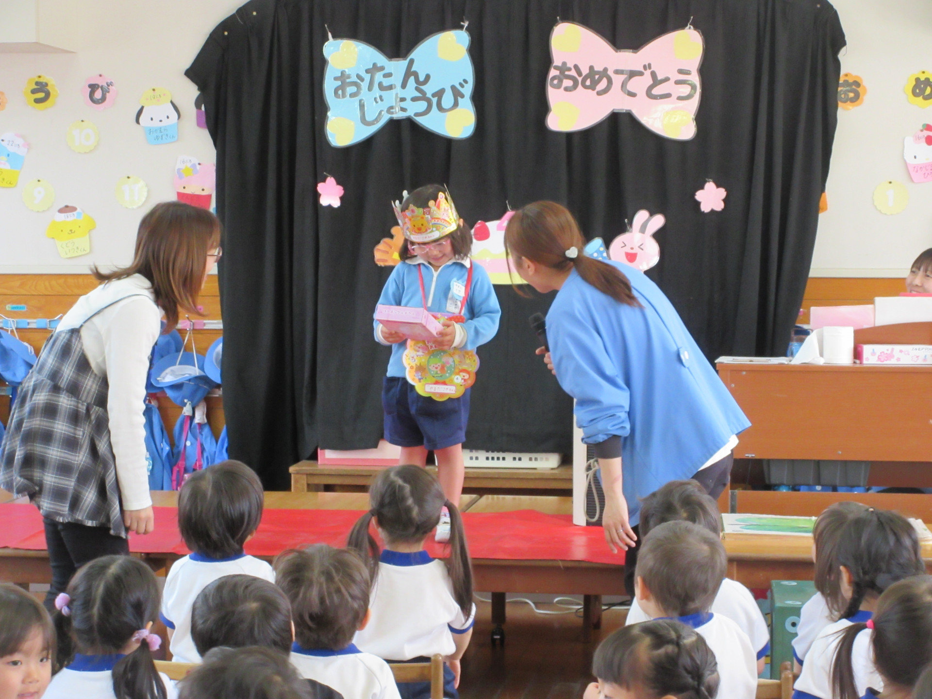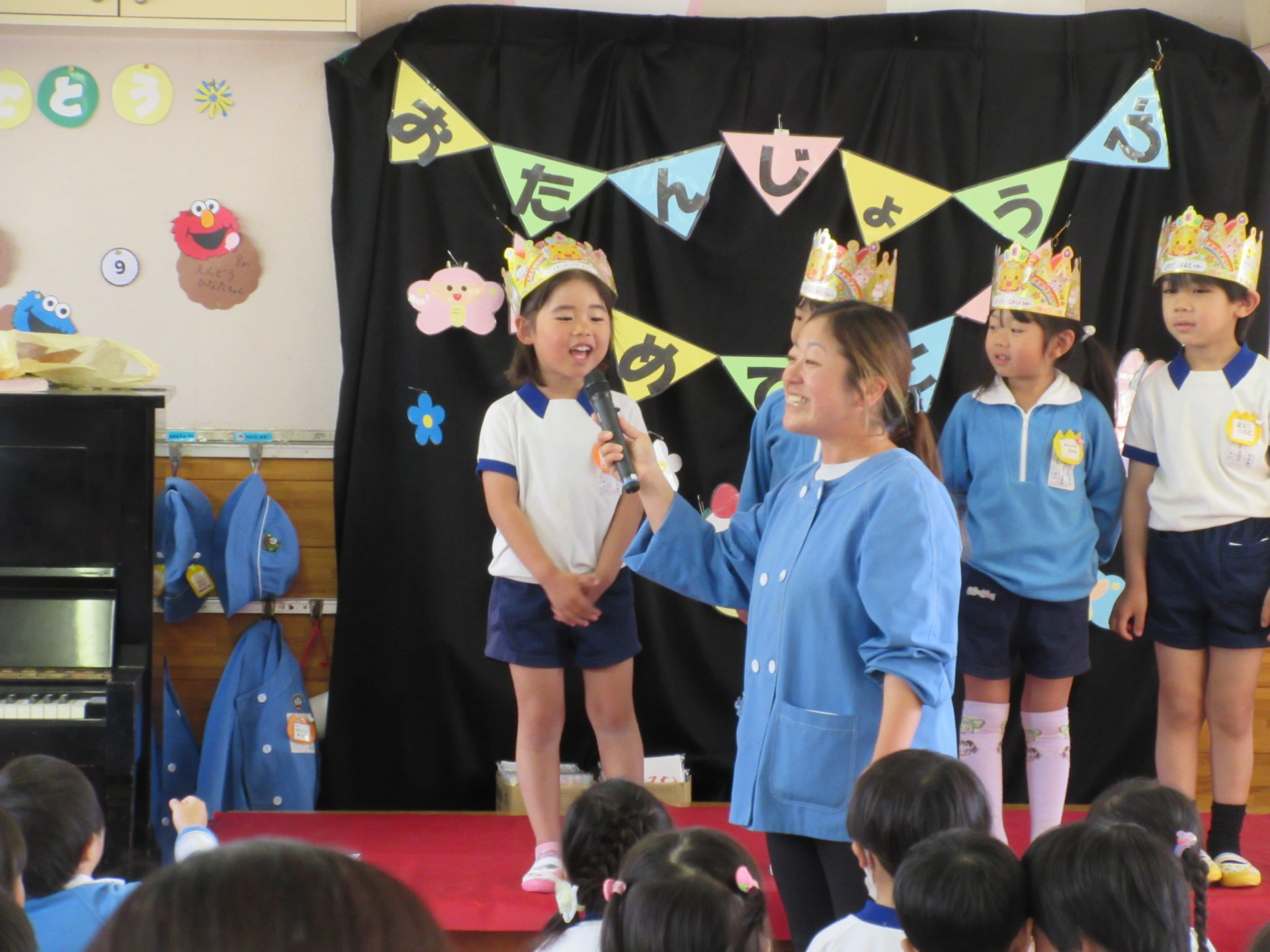 年少さんは初めてのお誕生会、年中・年長さんは新しいクラスでのお誕生会で、お祝いする側もされる側もちょっぴりドキドキの子どもたちでした😊